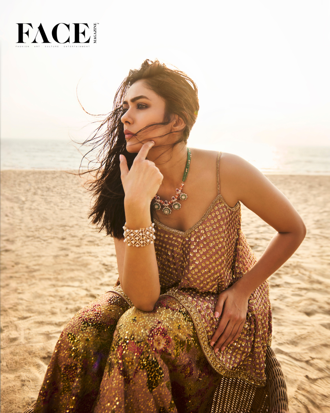 In the bustling corridors of the Indian film industry, a name that stands out with grace, talent, and an undeniable charm is Mrunal Thakur. Known for her impeccable portrayals of characters like Sita, Sonia, Yashna, Ananya, and Adhira, Mrunal has carved a niche for herself, becoming a beloved figure on the silver screen. With her million-dollar smile, nuanced acting, and a simplicity that resonates with many, she has won the hearts of audiences and critics alike. In an exclusive interview with Face Magazine, Mrunal shares insights into her journey, her roles, and the essence of romance in her life.